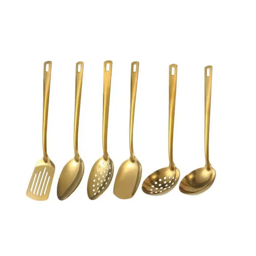 Ensemble de couverts coréens 6 pièces en acier inoxydable – Finition dorée élégante